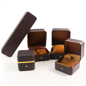 Puジュエリーボックス金辺丸みリングボックスペンダントブレスレットボックスチェーンボックスジュエリーショップファッションアクセサリーボックス