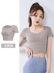 Juyitang 夏ショート女性スポーツトップ胸パッド付きランニングタイトヌードフィットネスヨガ半袖