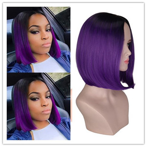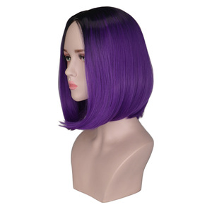 欧米のかつらの女性のファッションの波の頭の黒のグラデーションの紫のショートヘアのboboの頭の中で短いストレートヘアの化繊の頭のカバーの卸売りを分けます。