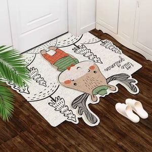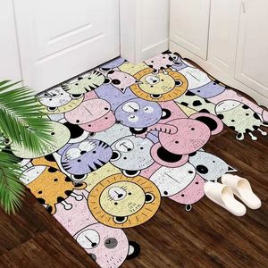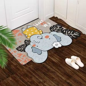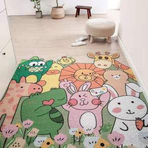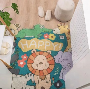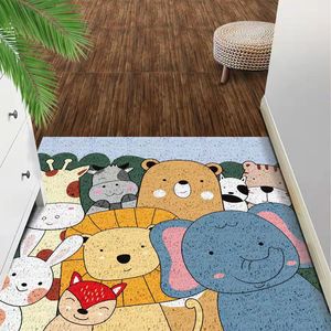 WO 漫画動物シルクサークル玄関ドアフロアマットカーペット PVC 耐摩耗性ドアホームフットマットカット可能