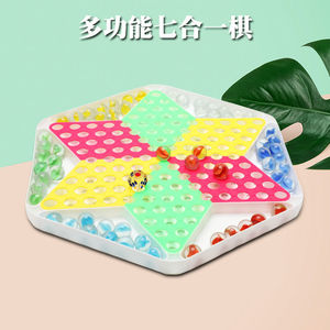 ガラス製7in1チェッカー多機能おもちゃチェス子供向け知育学生用多人数ゲームチェスボードゲームガラス玉