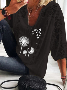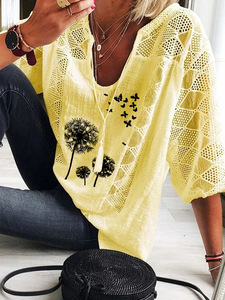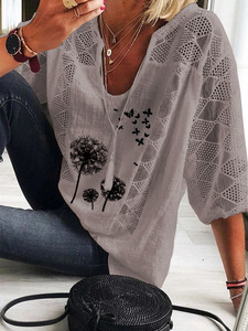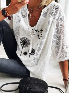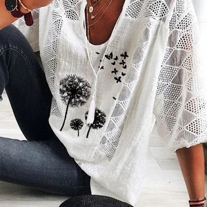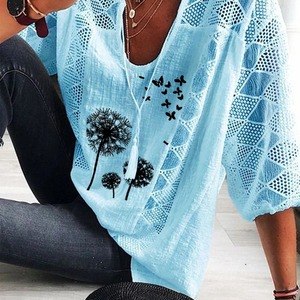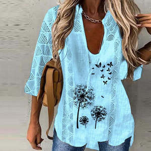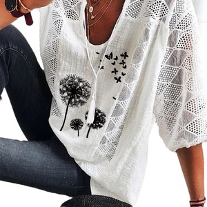 2025年ゆったり型速売通(速売通)アマゾン(アマゾン)wish(wish)新作欧米風レースプリント切り替えUネック七分袖トップス