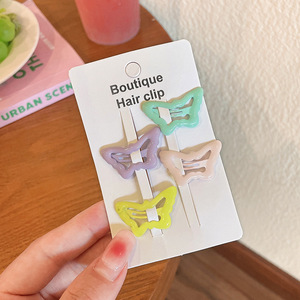 9481l蝶々夜光亮面黄色玫粉ヘアピン4個入