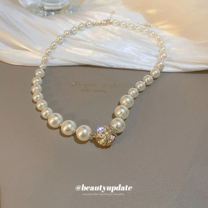 フランスのレトロな真珠の小さいボールはダイヤモンドのネックレスを入れます。