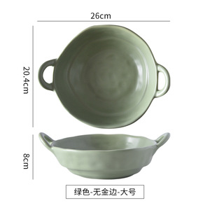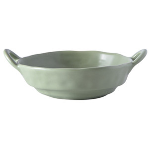 大きいサイズの両耳の異形の碗のお茶の緑色
