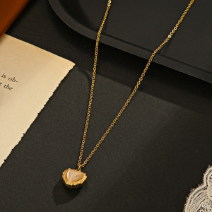 ネットレッドinsシンプルな愛のネックレス女性14k金メッキの小さなデザイン感が真珠ハート型鎖骨鎖卸売り