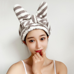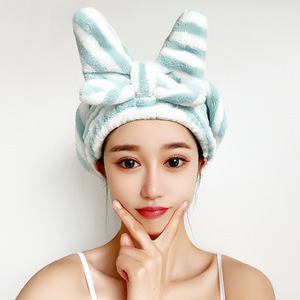 家の簡単な塵は大きい蝶結びの乾いた髪の帽子の女性のストライプの王女の帽子の強い吸水の速乾したサンゴの綿毛を除いて柔らかい肌にキスします。