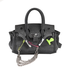 ヴィンテージ風ハンドメイドデニムプラチナバッグ、個性的な切り替えデザインの乞食バッグ、大容量斜め掛けキャンバスケリーバッグ、ハンドバッグ