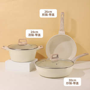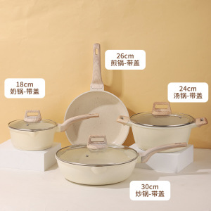 クロスボーダー家庭用麦飯石鍋セット鍋フライパン炒め鍋プレゼント鍋4点セット鍋卸売り