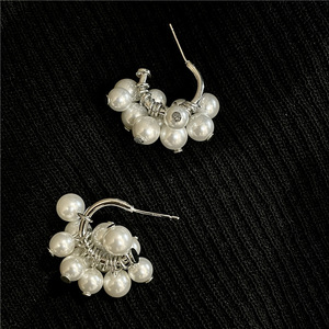 日韓ins博主同モデルの大衆気質の甘い真珠の花のイヤリングの女性はc型の個性の耳輪の潮を取り外します。