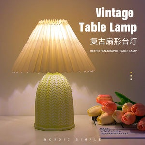 北欧百シワレトロ卓上スタンド陶器寝室书斎ベッドヘッドライト高级感インスタ装饰ムードライトナイトライト