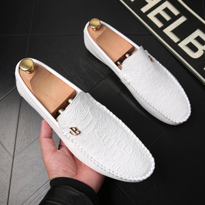 白い革靴の男性の怠け者の靴の英倫の帆の靴の韓国版の柔らかい底の柔らかい顔の皮のカジュアルな靴の男性の白い靴の1足のペダル