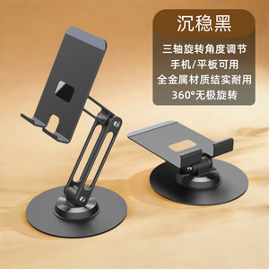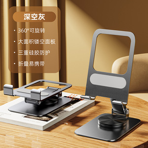 スマホスタンド 卓上 ポータブル 怠け者向け ライブ配信 アルミ合金製 スマホホルダー 折りたたみ式 360度回転 メタルタブレットスタンド