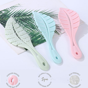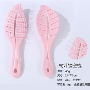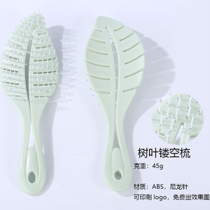 新しいヘアスタイリングコーム、ウェットとドライの両用、滑らかな髪、柔らかい歯、ロングハンドル、マッサージツリーの葉の形、女性用のヘアケア中空コーム