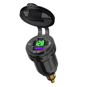 Bmw杜卡迪欧規プラグオートバイusb携帯電話充電器qc3.0電圧計表示付き