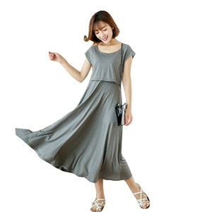 2022新型の大きいサイズの妊婦のスカートの哺乳のワンピースは外出して肩の半袖の大きいサイズの長いスカートを挿します。