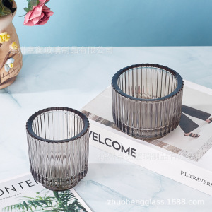 二重厚壁キャンドルグラス厚い底アロマキャンドル台ヨーロッパ風縦縞厚壁キャンドルカップアーク底キャンドルカップ