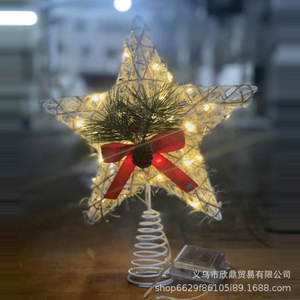 2022国境を越えた新しい鉄芸樹頂星帯灯五角星装飾品ledクリスマスツリートップ装飾灯