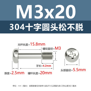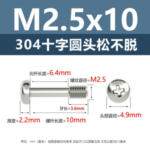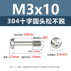 メーカー直販304ステンレス十字丸頭松不脱ねじ釘M2-M8盤頭半歯ボルトねじ