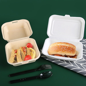 使い捨てのパルプのハンバーガーの箱は分解して箱のネットの赤い果物のケーキの箱の四角形の弁当箱の連体のロックの箱を詰めます。
