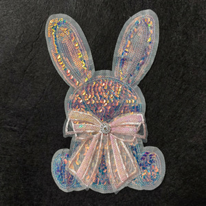 晋芸の蝶結びの漫画のウサギの刺繍の布は丁を貼って服装のアクセサリを貼ります。