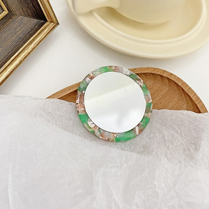 日本と韓国のインスタイルのシンプルなアセテート小型丸型ミラー、ポータブル化粧鏡、ポータブルハンドヘルド化粧鏡、トラベルミラー