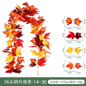 ハロウィーン秋色掛け飾りシミュレーション紅葉アマゾン感謝祭装飾壁掛けシミュレーション紅葉黒い藤条