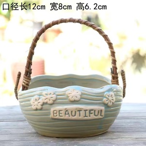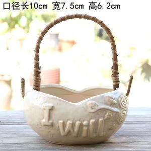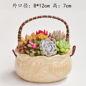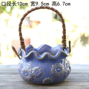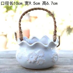 個性創意多肉サイズ手提げ植木鉢陶磁器レリーフ粗陶通気清新肉植物園芸盛り合わせ