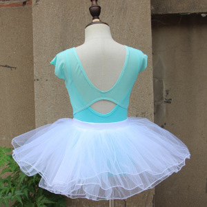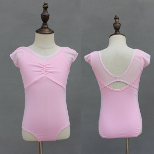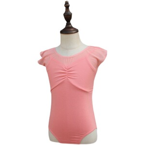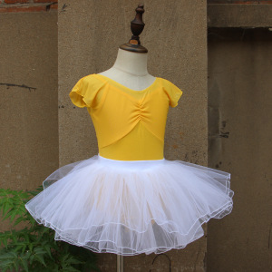 子供のダンスの練習服の女の子の夏のガーターの形の服のオレンジの粉の半袖の中国のダンスの体操服の黄色の蓬蓬のスカート