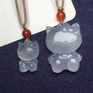 生中継は天然の白玉髄ドラえもんkt猫ペンダント氷白玉髄子猫玉器卸売りを提供します。