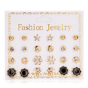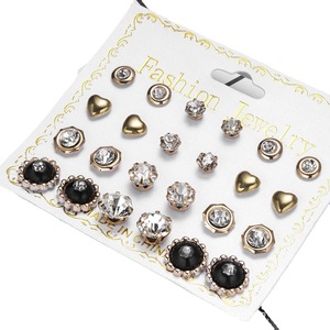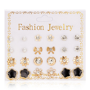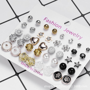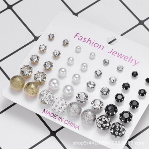 202212 パールジルコニウムイヤリングセット 欧米風シンプルダイヤモンドイヤリング 女性用卸売トレンド幾何学模様ダイヤモンド