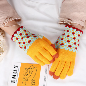 冬の成人保温手袋卸売り屋外防寒指分け手袋シンプルでファッション機能タッチパネルニット手袋