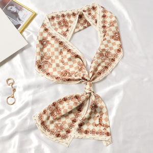 シルクタオル春秋小長条洋気ファッション二重女性韓国百合装飾スカーフ