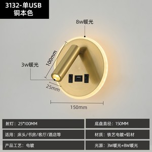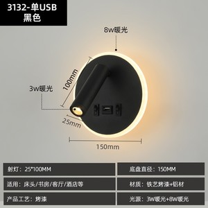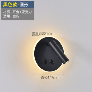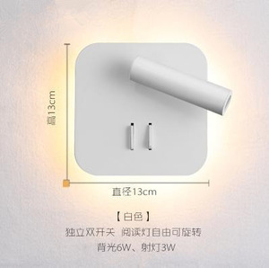 Led読書壁灯ダブルスイッチ350度回転円形ホテル客間寝室ベッド背景壁雰囲気灯