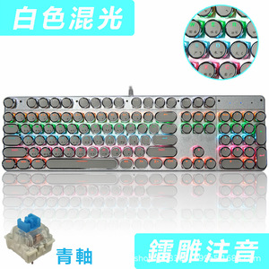 【台湾注音】レトロ電気競争キーボード注音版ゲームキーボード電気競争キーボード青軸機械キーボード