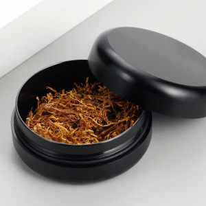 密封防湿トランペット貯蔵箱アルミニウム合金は携帯型ミニ貯蔵タンク円形黒色タバコ缶卸売りである