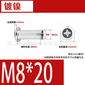 クロスM8 * 20mmニッケルメッキ