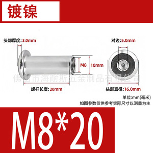 内六角m 8*20mm【貫通穴】ニッケルメッキ