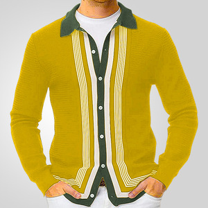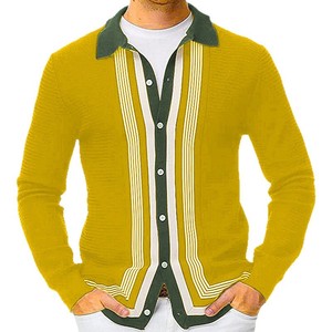 アマゾン外国貿易メンズ春秋新作メンズ長袖ニットストライプビジネス男性poloシャツsy0125