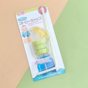 ボトル付きストローキャップ(プラグインカード) - 緑色の底部と黄色のキャップ