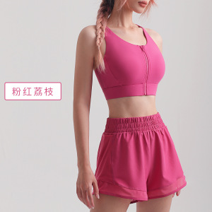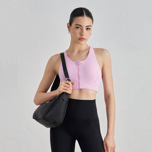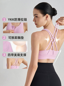 Huanpan Clothing ヌード感固定ワンカップフロントジッパースポーツブラプッシュアップ衝撃吸収フィットネスベストヨガ美背中