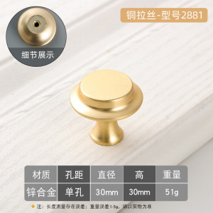 現代シンプルな中実亜鉛合金取っ手金色取っ手単孔円形キャビネットドア引き出し取っ手卸売り