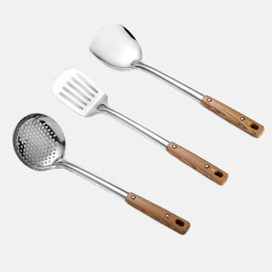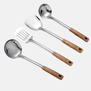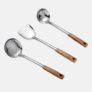 フライパンのフライパンのスプーンはステンレスの台所の料理道具を漏らしてお粥のスプーンのセットの家庭用台所用品の炒め物のシャベルを厚くします。