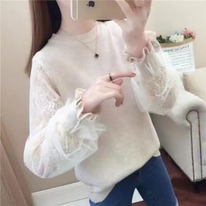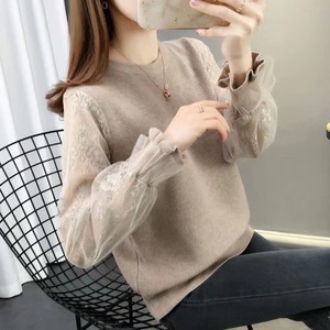 2025年春新作 ゆったりとした韓国風メッシュレース切り替えニット 長袖万能セーター レディースアウター