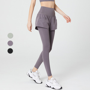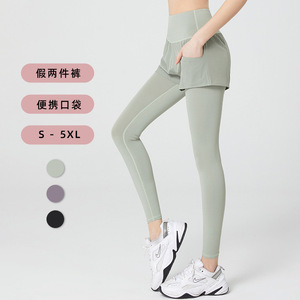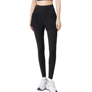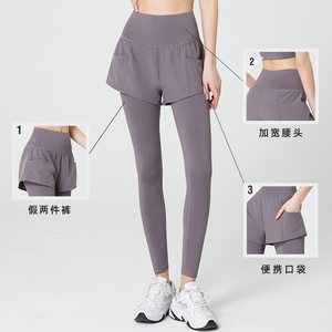 偽の2つのヨガのズボンの大きいサイズのフィットネスズボンの女性の速乾の春と秋の長ズボンの高い腰は尻のタイツの運動のズボンを持ちます。
