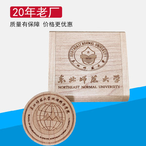 Uディスクメーカー卸売り創意円形木質校章プレゼントuディスク16g 32g 128g無料彫刻ロゴ