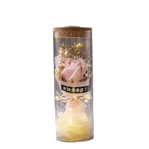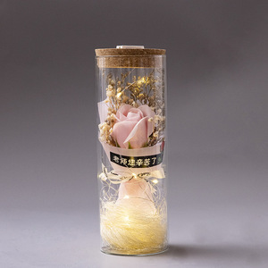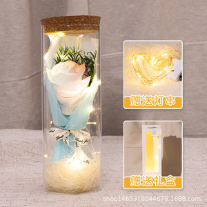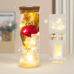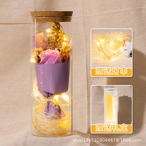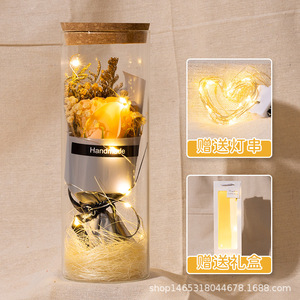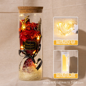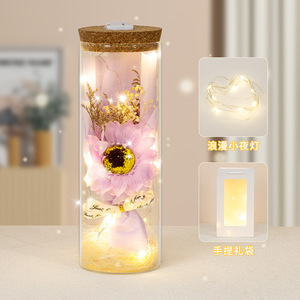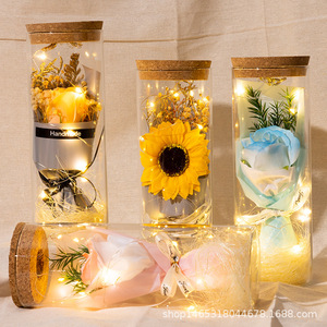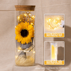 バレンタインデープレゼントひまわり満天星バラ永生花束発光灯ガラス瓶小置物メーカー直販