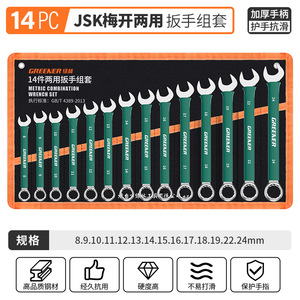 緑林両用プラスチック開口レンチ14延長梅13梅開融通棒自動車修理工具8-32mmセット