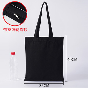 黒のキャンバスバッグクロスボーダー空白DIYスポット大容量ジッパー綿手提げ袋代発印刷可能ロゴ