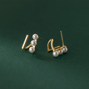 納蘭s925銀合成真珠一字二重ピアス甘い個性気質女性イヤリングアクセサリーm02309